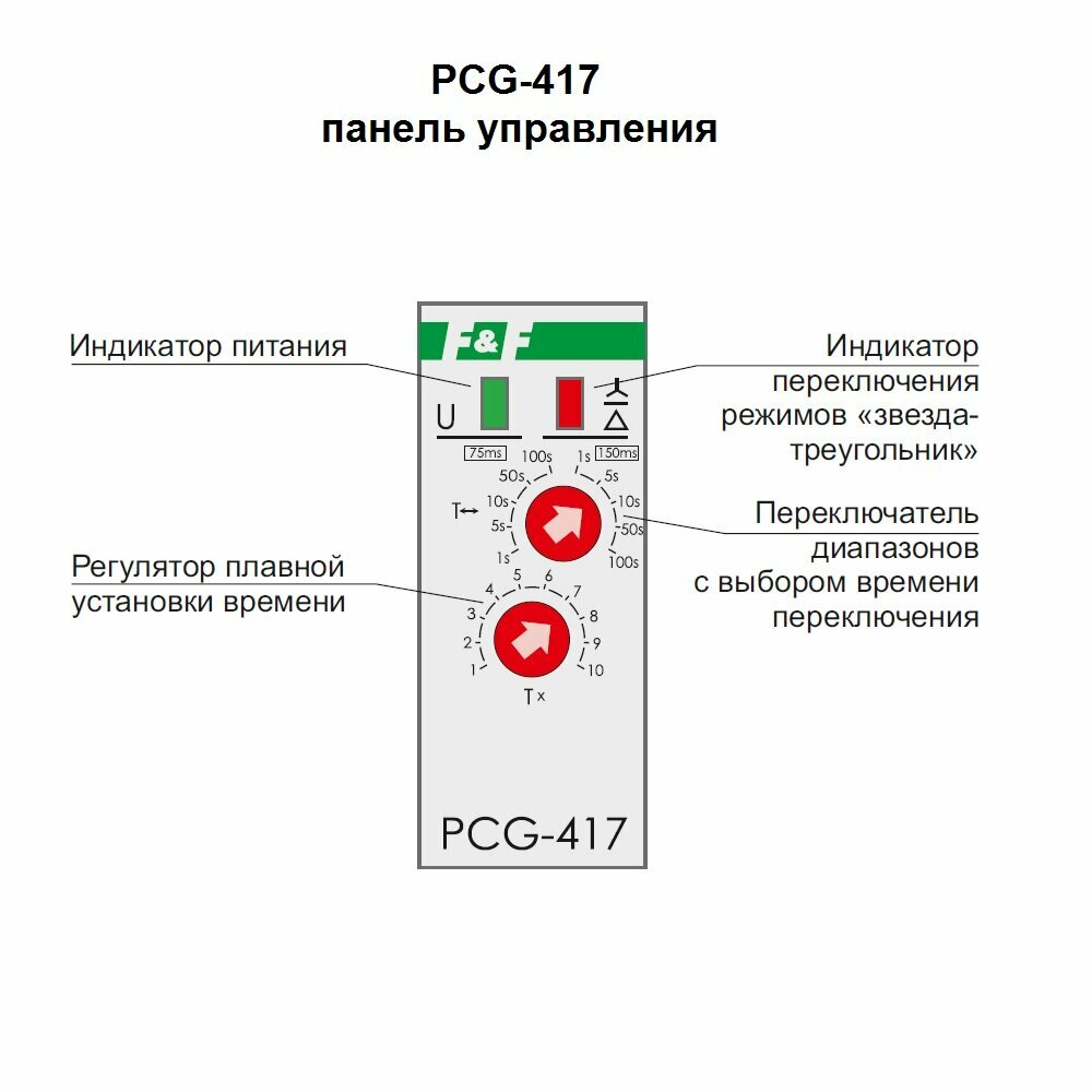 Купить Реле времени PCG-417 (звезда-треугольник для пуска электродвиг. 230В 2х8А 2НО IP20 монтаж на DIN-рейке) F&F EA02.001.020