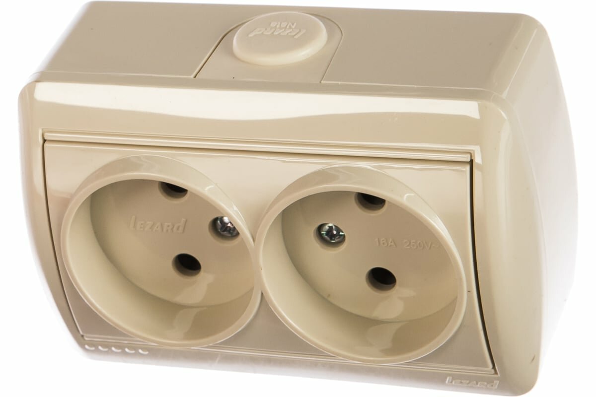 Розетка 2-м ОП Ната 16А IP20 без заземл. керамика крем. LEZARD 710-0300-128 (5шт.в упак.)