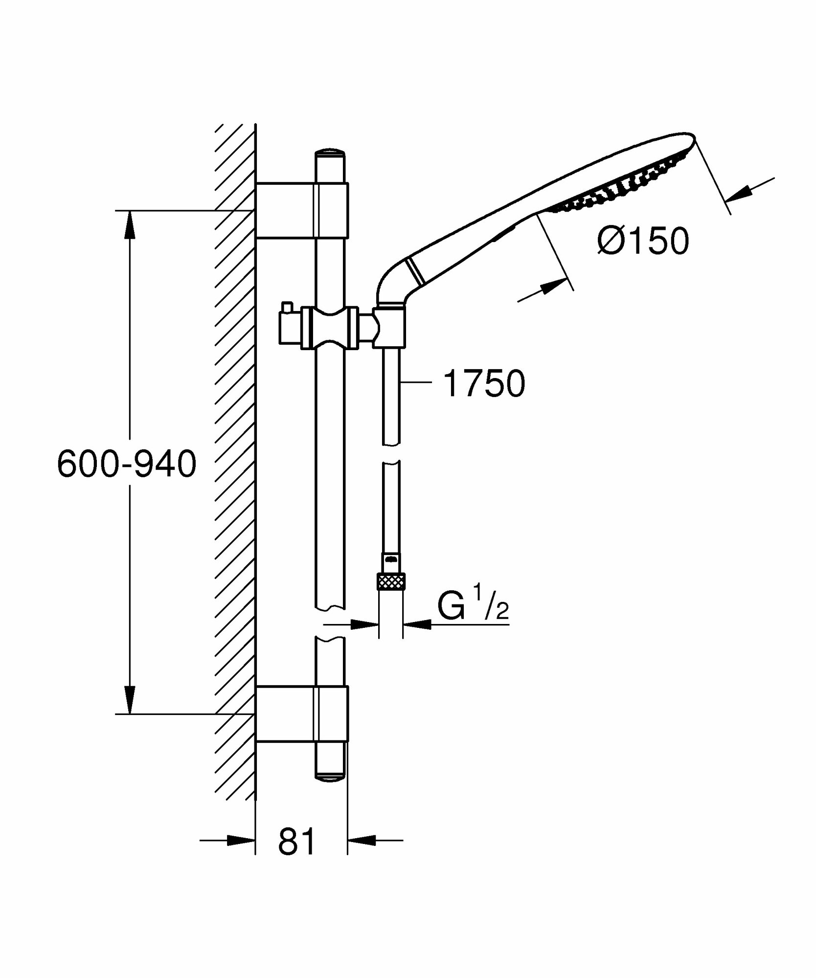 Душевой гарнитур GROHE Rainshower Solo (ручной душ, штанга 900 мм, шланг 1750 мм), хром (27273001)