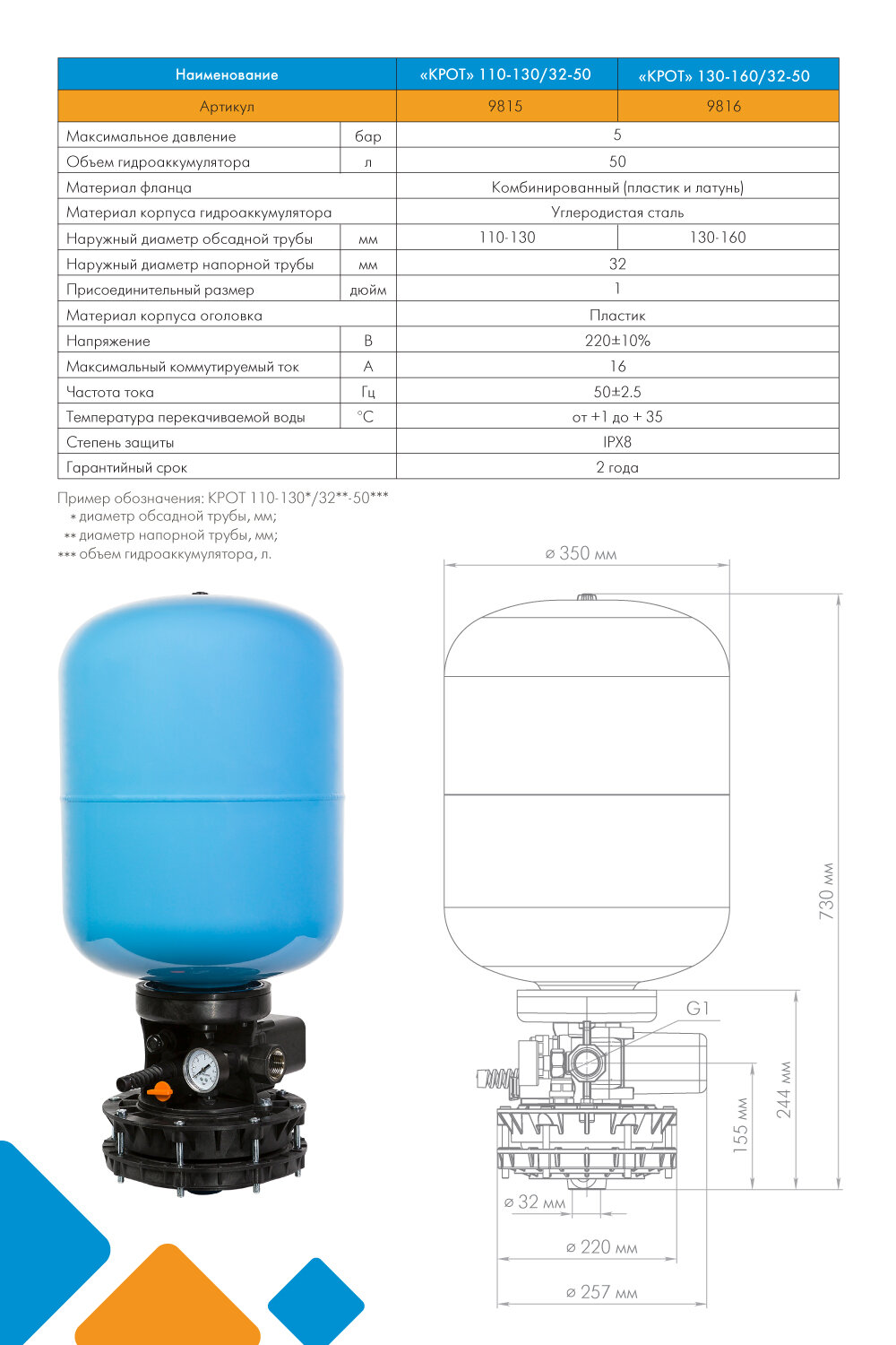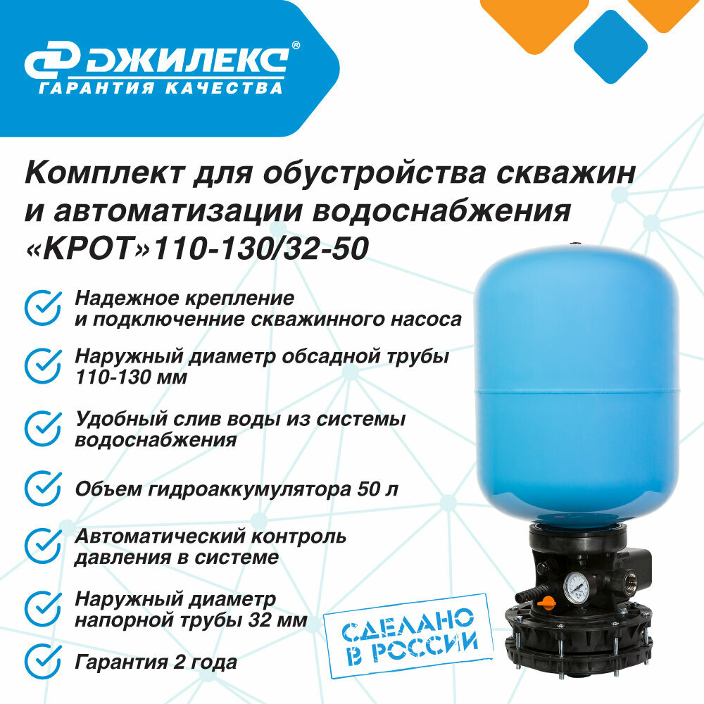 Комплект обустройства скважины крот 110-130/32-50 (огловок и гидроаккумулятор) ДЖИЛЕКС интересное: