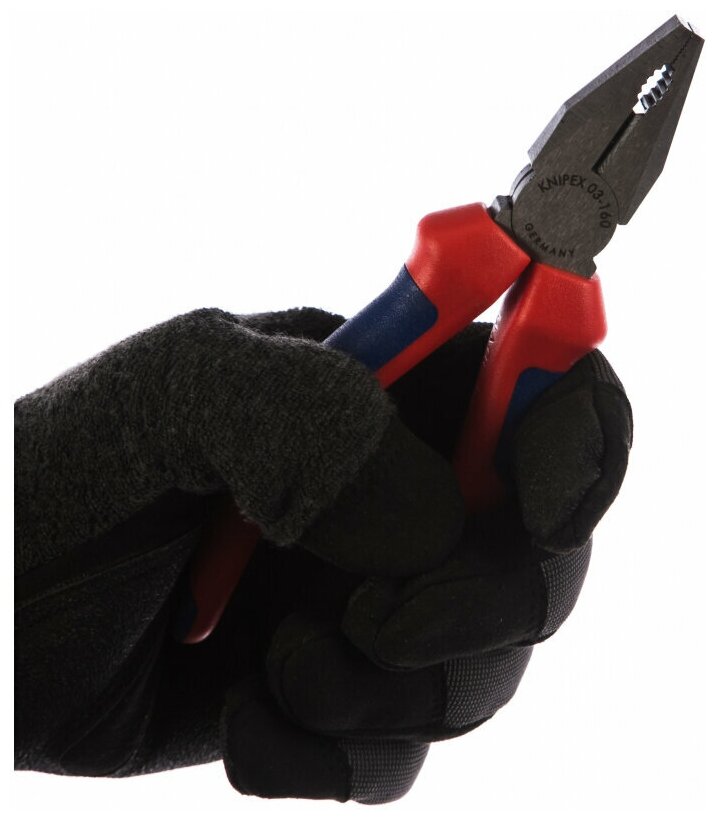Плоскогубцы комбинированные KNIPEX KN-0302160, рез: проволока средней твёрдости Ø 3.1 мм, твёрдая проволока Ø 2 мм, кабель Ø 10 мм (16 мм²), L-160 мм, чёрные, 2-компонентные рукоятки