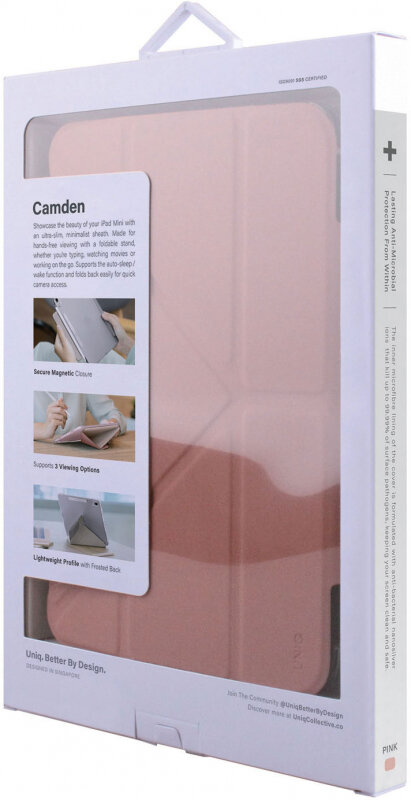 Купить Uniq Чехол-книжка Uniq Camden Anti-microbial Pink для iPad mini 6 розовый PDM6(2021)-CAMPNK