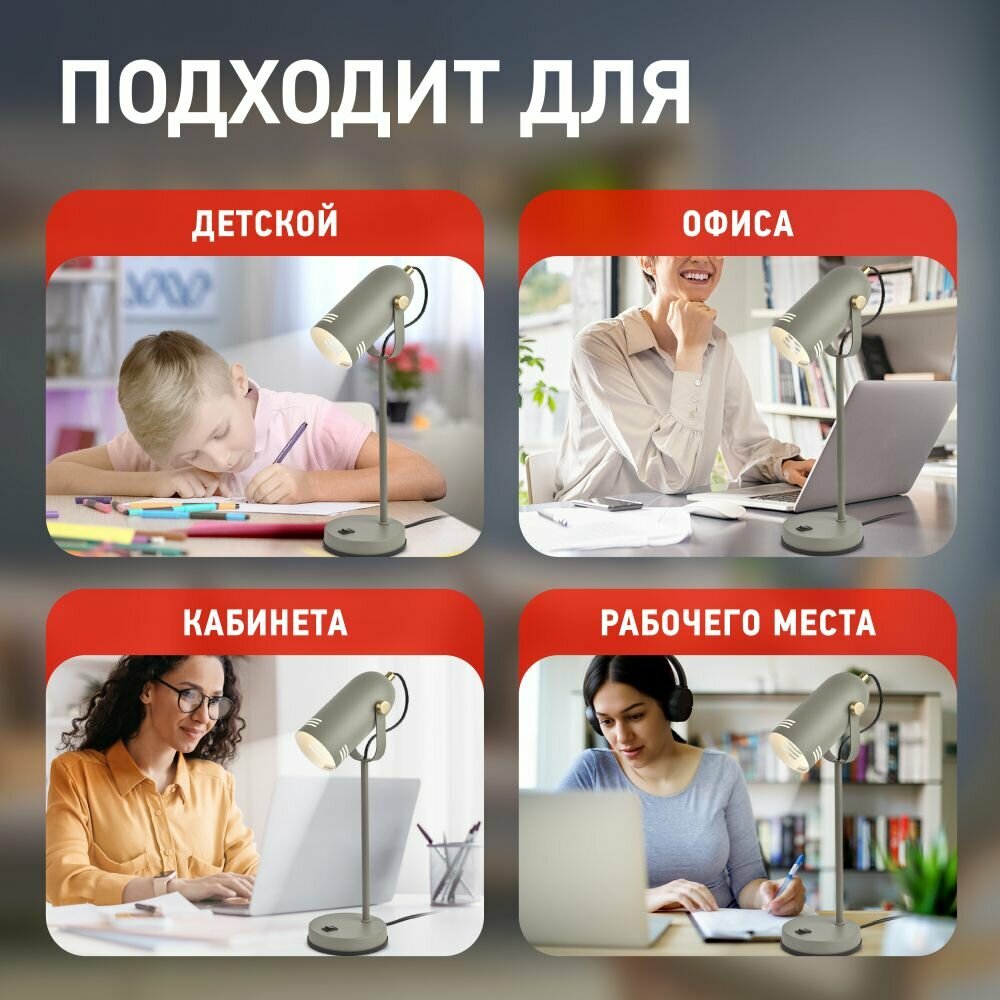 Современный светильник настольный для учебы,работы ЭРА N-117-Е27-40W-GY 40W E27 серый