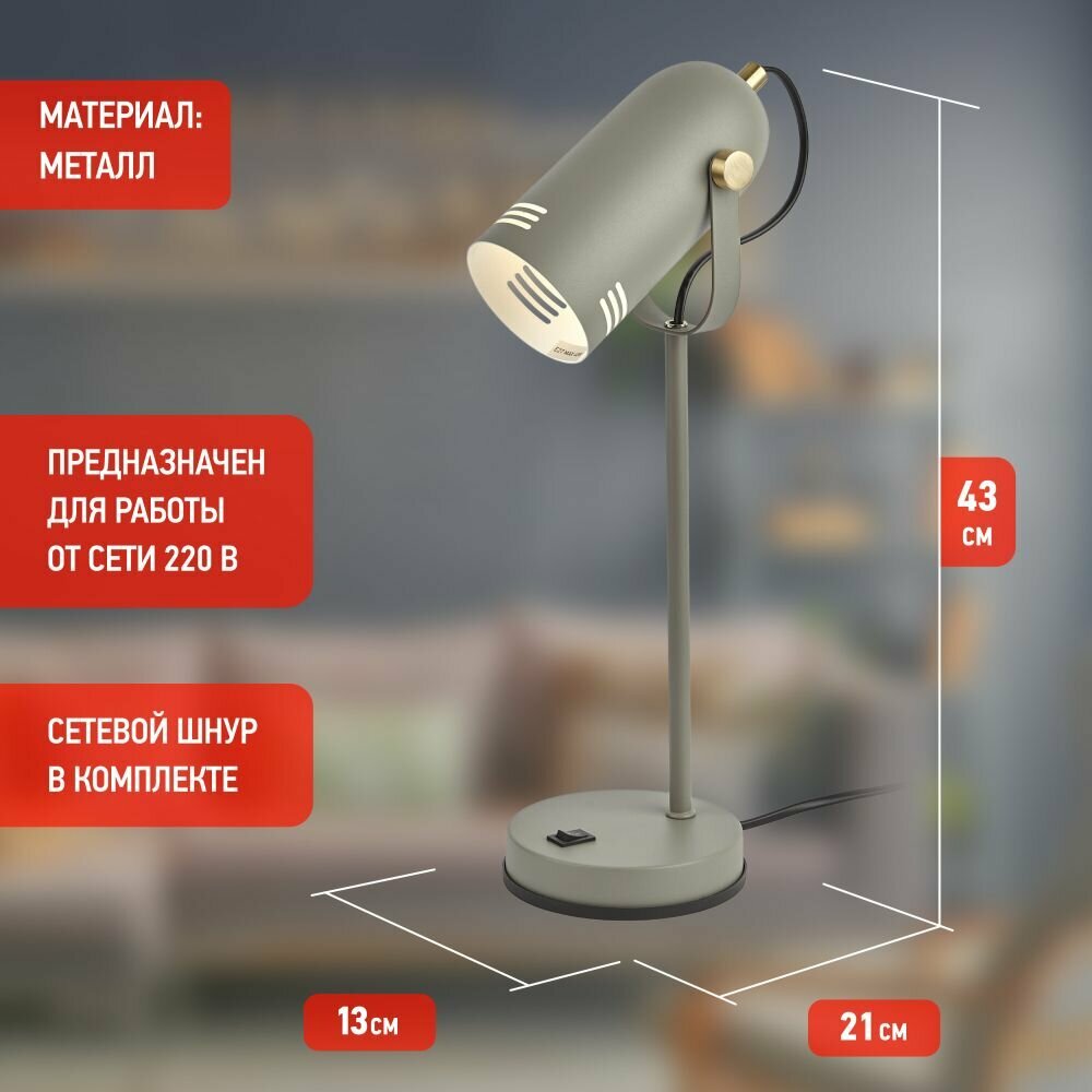 Лампа настольная E27 декоративная, для спальни, офиса, для школьника, для учебы ЭРА N-117-Е27-40W-GY / Светильник настольный для спальни декоративный, лофт, ретро, винтаж, серый