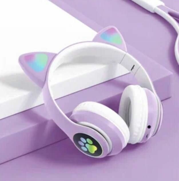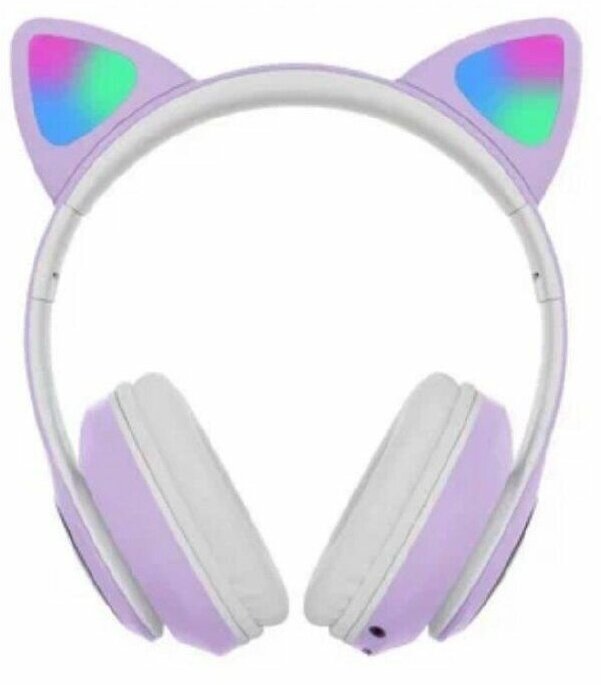 Наушники беспроводные для детей CAT STN-28, Bluetooth, встроенный микрофон, с ушками кошки, святящиеся,фиолетовый интересное: