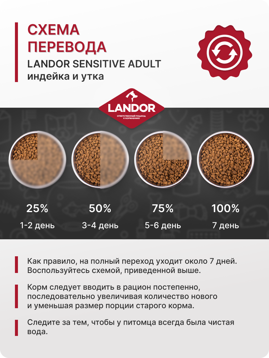 LANDOR CAT ADULT SENSITIVE для взрослых кошек с чувствительным пищеварением с индейкой и уткой (0,4 кг)