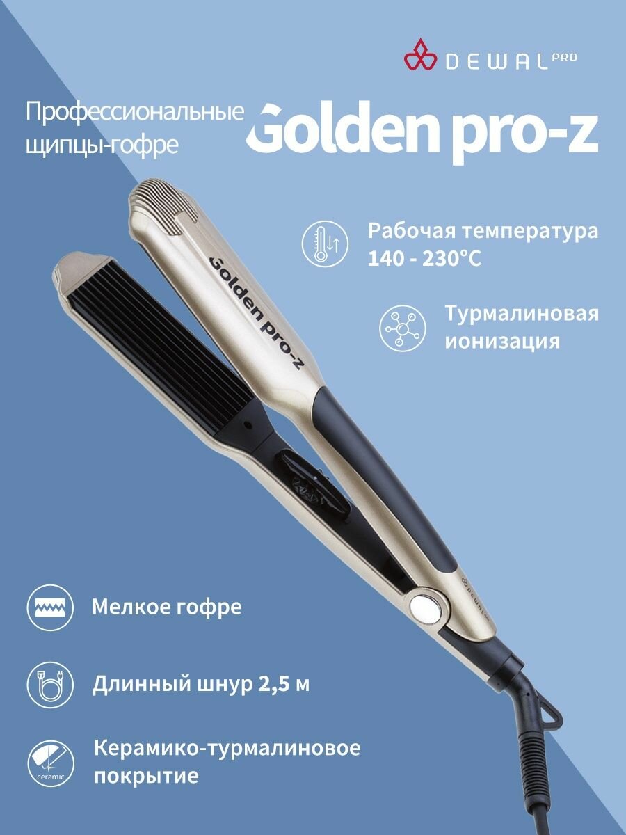 Щипцы-гофре DEWAL GOLDEN Pro Z , 45x95мм, керамико-турмалиновое покрытие, 48 Вт 03-030Z