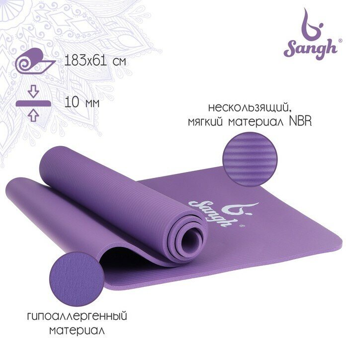 Купить Sangh Коврик для йоги 183 × 61 × 1 см, цвет фиолетовый