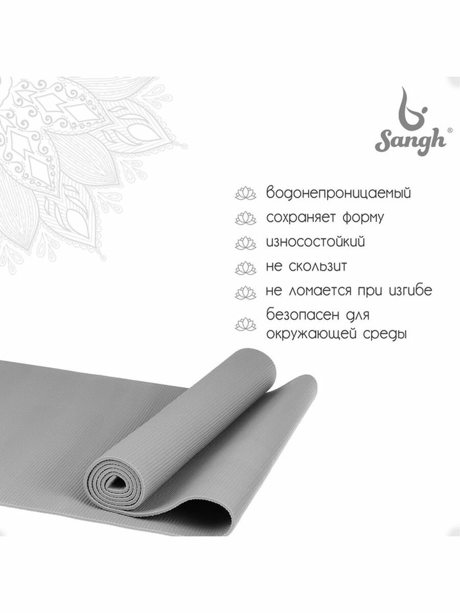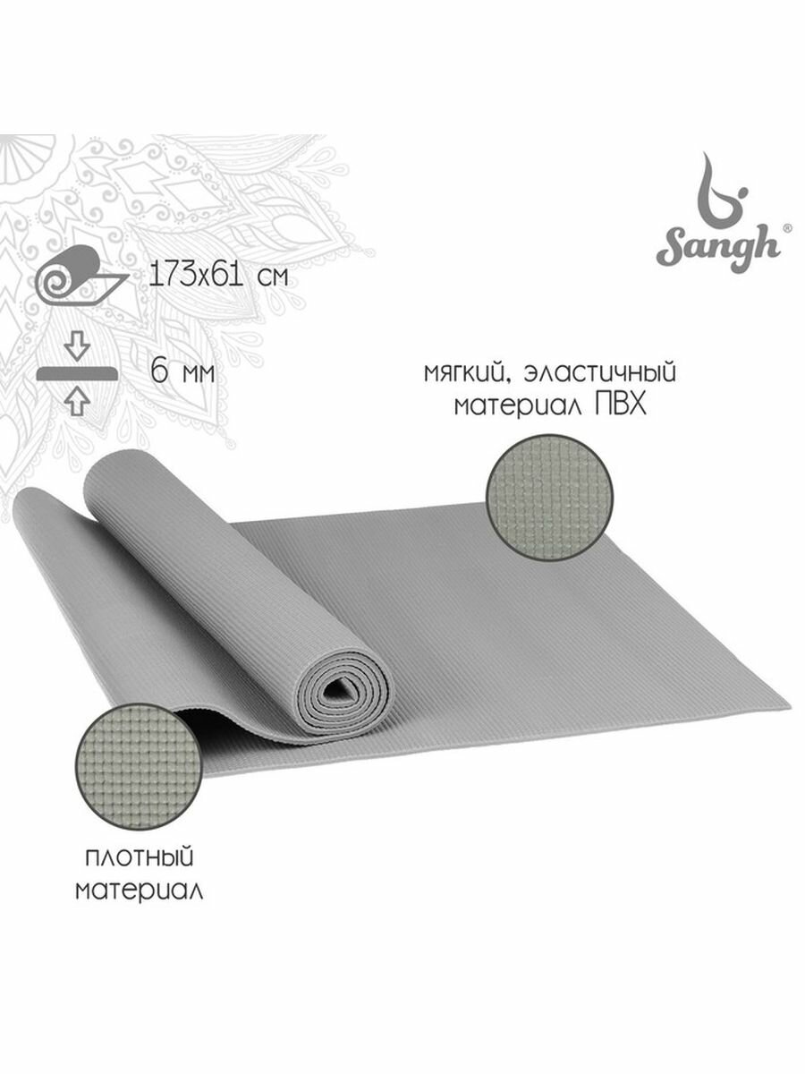 Коврик для йоги Sangh, 173 *61* 0,6 см, цвет серый