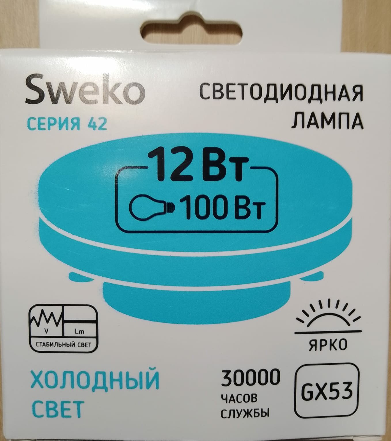 Светодиодная лампа SWEKO 42LED-GX53-12W-230-4000K-GX53, цена за 1 шт. интересное: