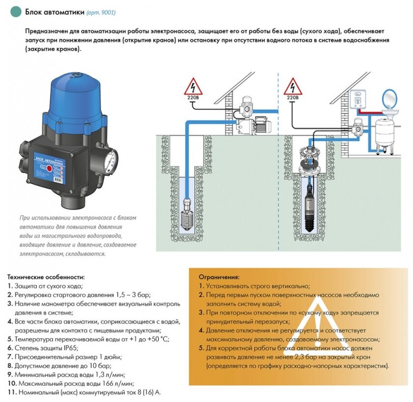 | Плюсы: | Реально в состоянии защитить поверхностный насос от "сухого хода" |