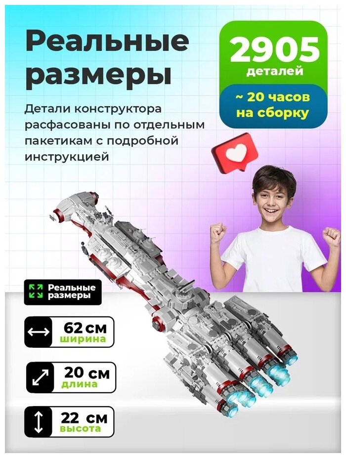 СохранитьКонструктор Mould King 21003 Кореллианский корвет CR90 из 2905 деталей интересное: