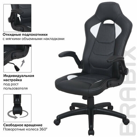 Купить Кресло компьютерное BRABIX "Skill GM-005", откидные подлокотники, экокожа, черное/белое