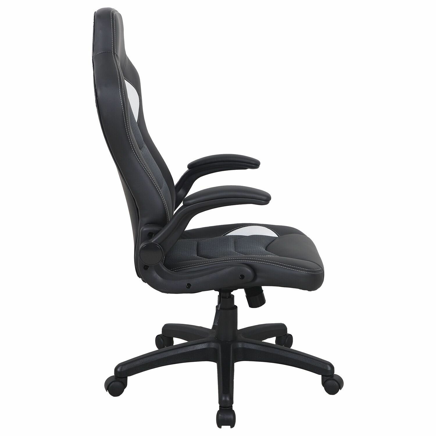 Кресло компьютерное BRABIX Skill GM-005, откидные подлокотники, экокожа, черное/белое