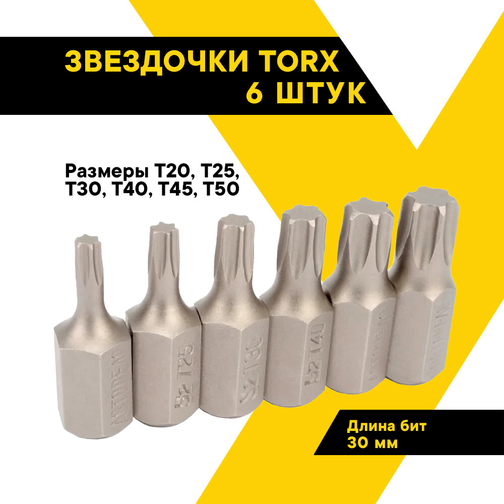 Набор бит Torx 6 пр. Т20-50 L-30 мм АвтоДело интересное: