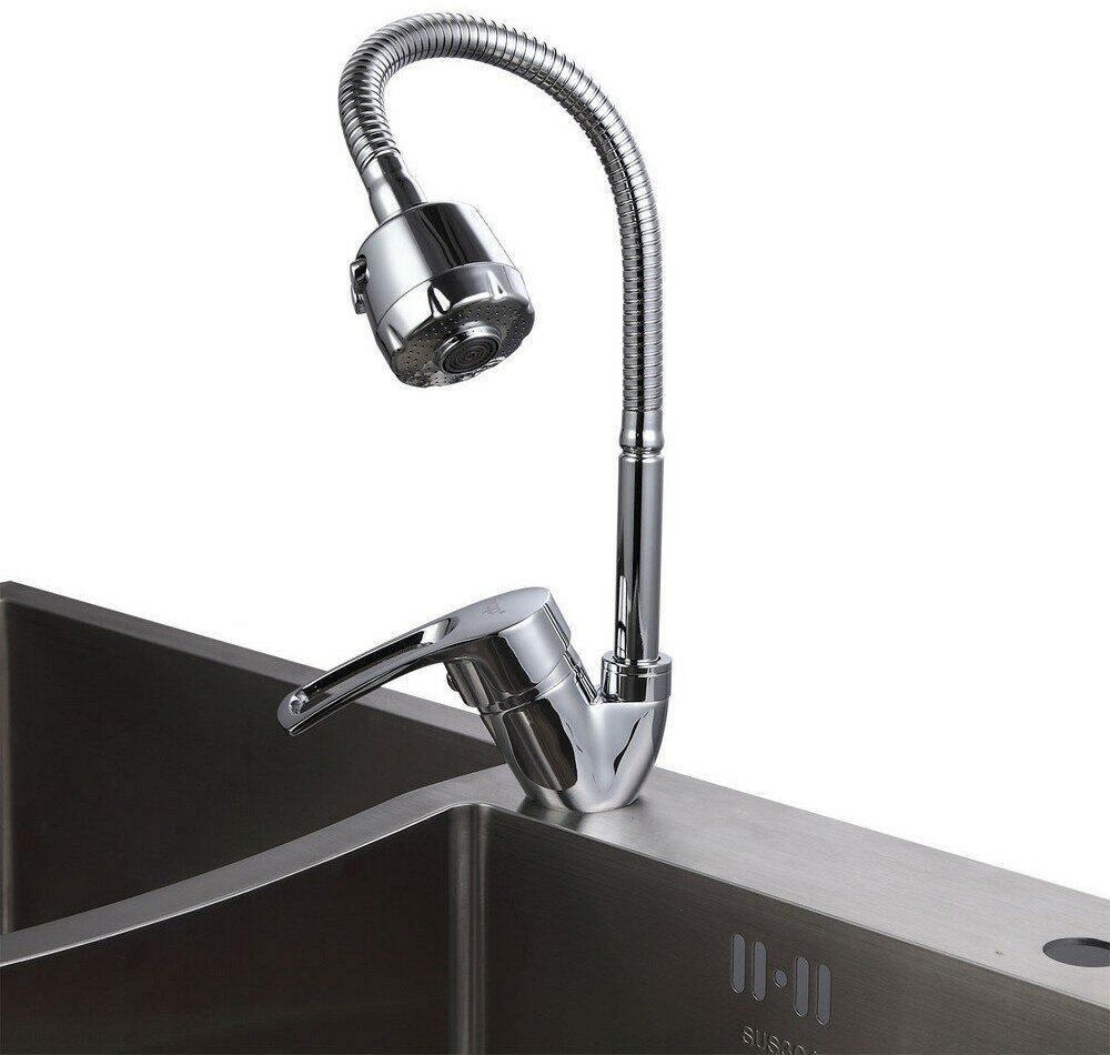 Смеситель для кухни Frap F43701-B, гибкий излив, однорычажный, хром
