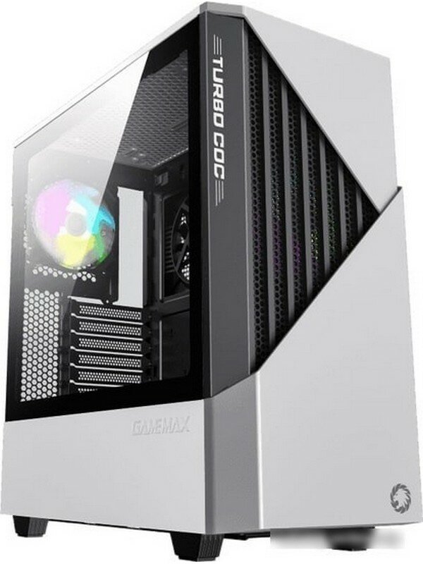 Компьютерный корпус, без блока питания ATX/ Gamemax Contac COC WB ATX case, black/white, w/o PSU, w/2xUSB3.0, w/1x14cm ARGB front fan(GMX-FN14-Rainbow