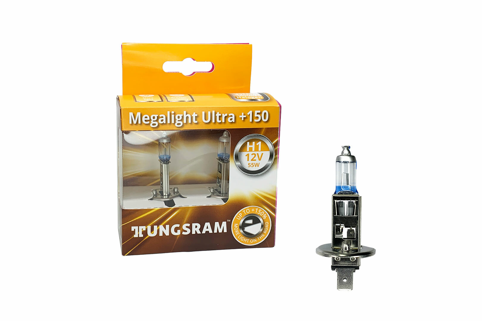 Купить Лампа автомобильная TUNGSRAM Megalight Ultra +150 H1 12V 55W (P14,5s), 2шт, 59010NXNU PB2