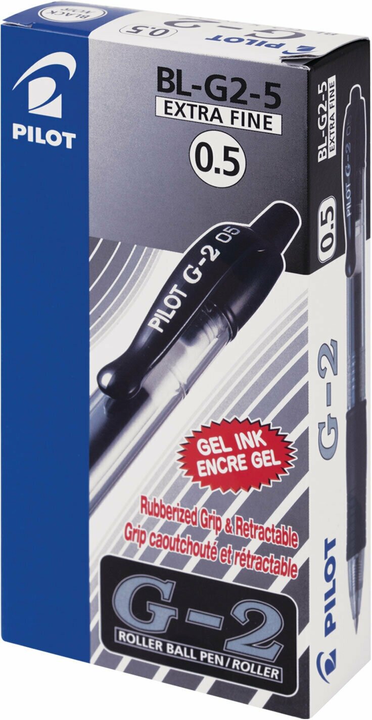 Pilot Ручка гелевая автоматическая G-2, 0,5 мм, черный, грип, 2 шт