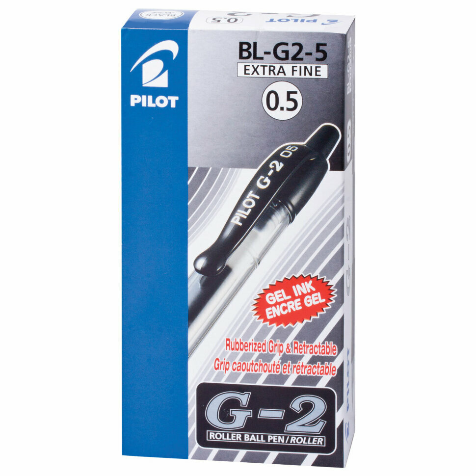 Ручка гелевая автоматическая Pilot BL-G2-5 (0.3мм, черный, резиновая манжетка) 1шт. (BL-G2-5-B)