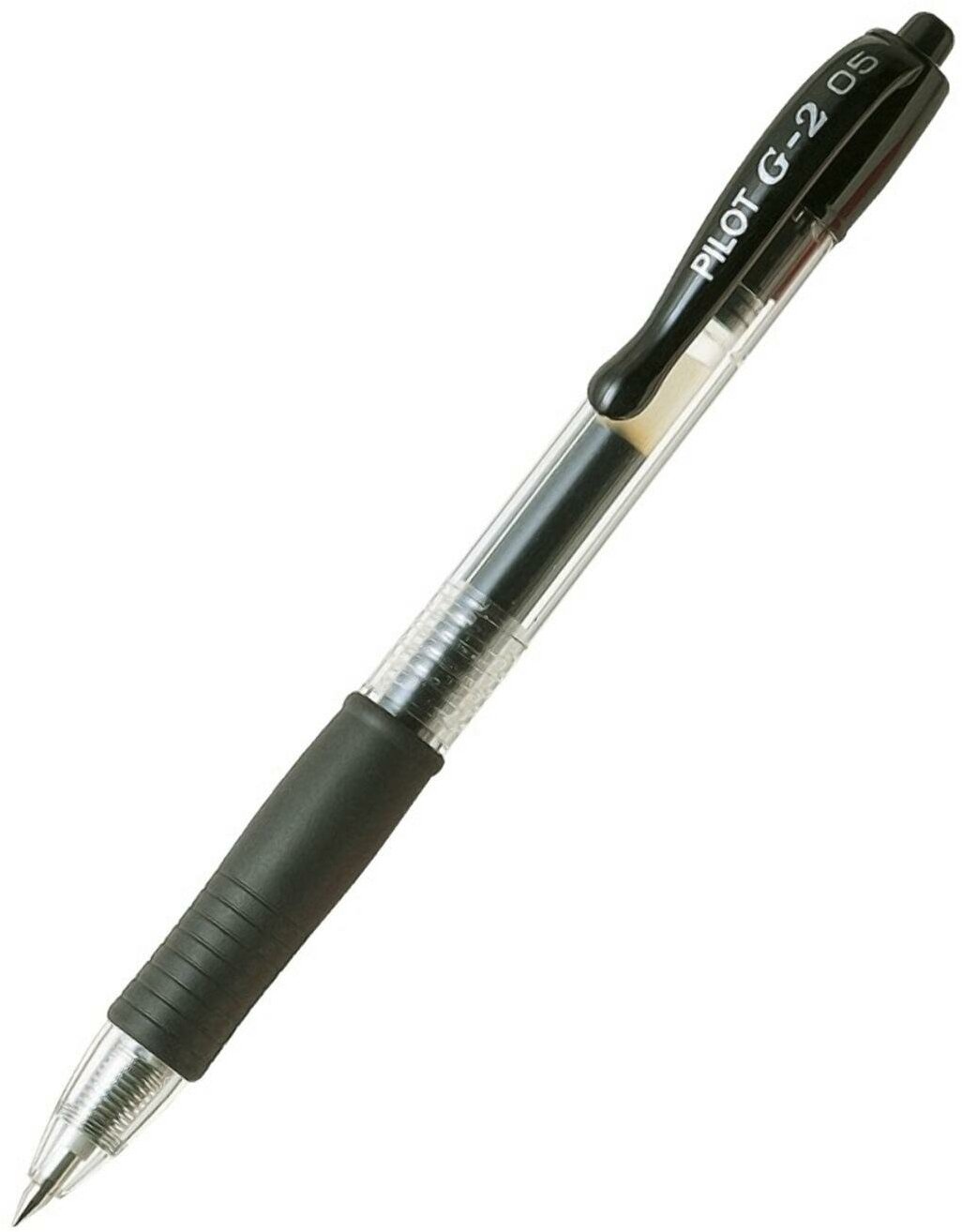 Ручка гелевая автоматическая с грипом PILOT G-2, черная, корпус прозрачный, узел 0.5 мм, линия письма 0.3 мм, BL-G2-5