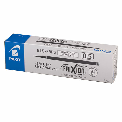 Стержень стираемый гелевый PILOT, 111 мм, черный, игольчатый узел 0,5 мм, линия письма 0,25 мм, BLS-FRP-5 Комплект - 12 шт.