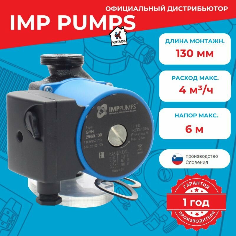 Циркуляционный насос GHN 25/60-130, 90 Вт, 130мм, корпус чугун, IMP 979521703 интересное: