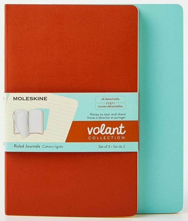 Блокнот Moleskine VOLANT Large 130х210мм 96стр. линейка мягкая обложка оранжевый/голубой (2шт) интересное: