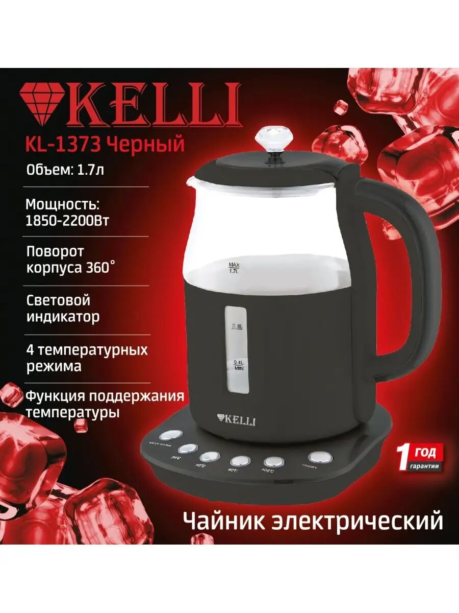 Чайник электрический KELLI KL-1373 1,7 л, чёрный
