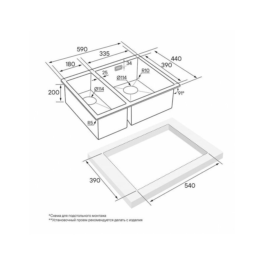 | Форма мойки | прямоугольная |