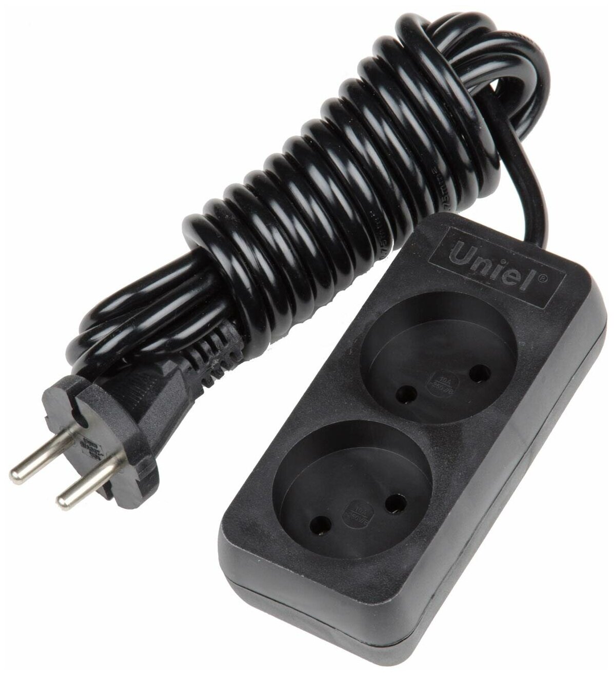 Купить Удлинитель Uniel Standart, 2 розетки, 3 м, 10 А, 2500 Вт, без з/к, черный