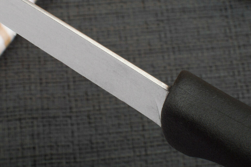 | Плюсы: | Тонкое лезвие, удобная ручка, с завода остро заточено, в комплекте есть точилка для домохозяек. |