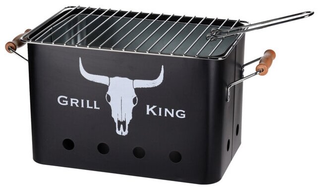 Портативный гриль на углях GRILL KING, с деревянными ручками, чёрный, 32х20х20 см, Koopman International интересное: