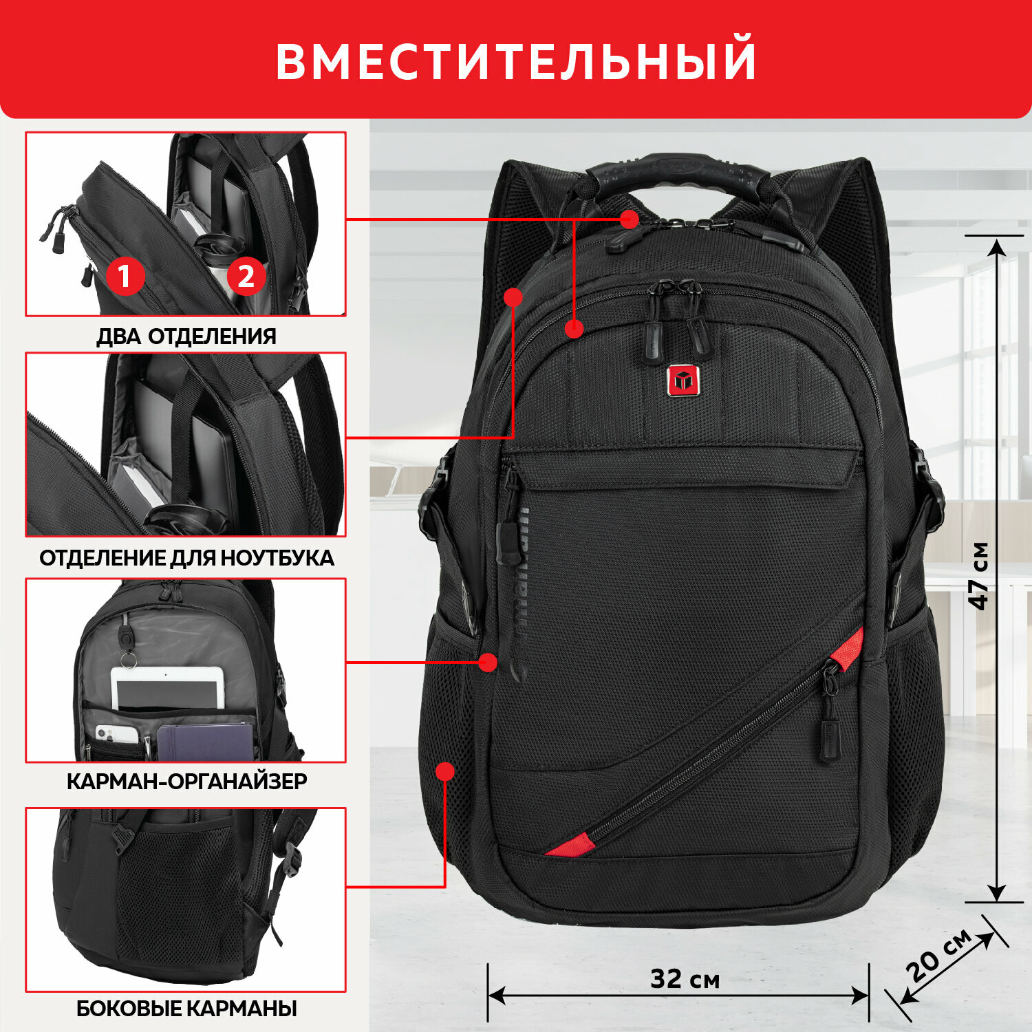 СохранитьРюкзак Germanium S-01 универсальный, с отделением для ноутбука, влагостойкий, черный, 47х32х20 см, 226947 интересное: