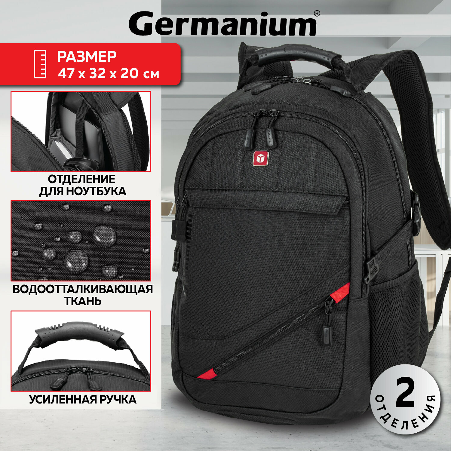 Купить Рюкзак Germanium S-01 универсальный, с отделением для ноутбука, влагостойкий, черный, 47х32х20 см, 226947
