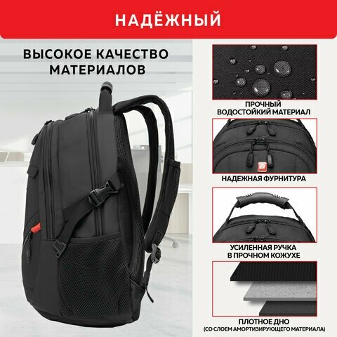 Рюкзак GERMANIUM "S-01" универсальный, с отделением для ноутбука, влагостойкий, черный, 47х32х20 см, 226947, 226947