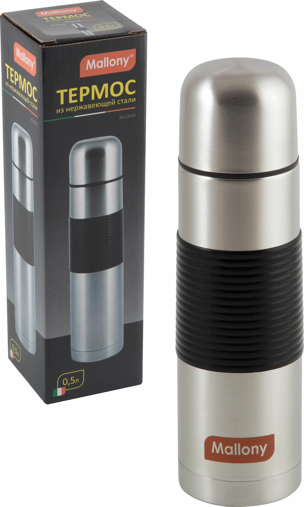 Классический термос колба Mallony Nuovo, 0.5 л, серебристый/черный