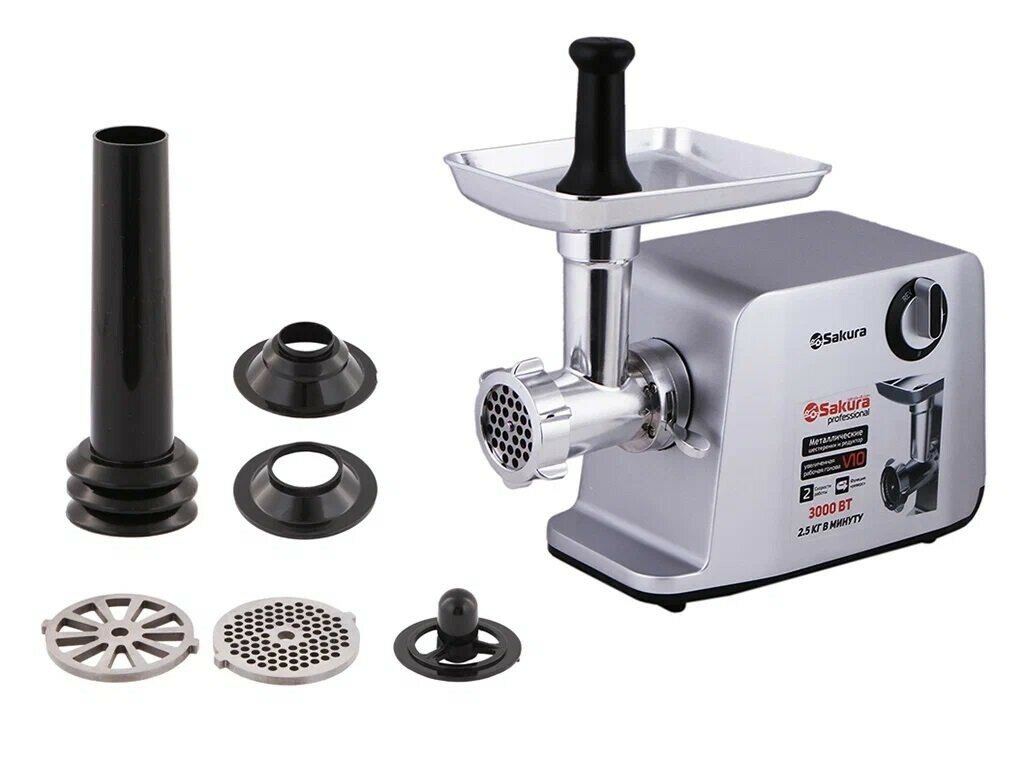 Мясорубка Sakura SA-6426 Professional 3000Вт, реверс, две скорости, комплект насадок