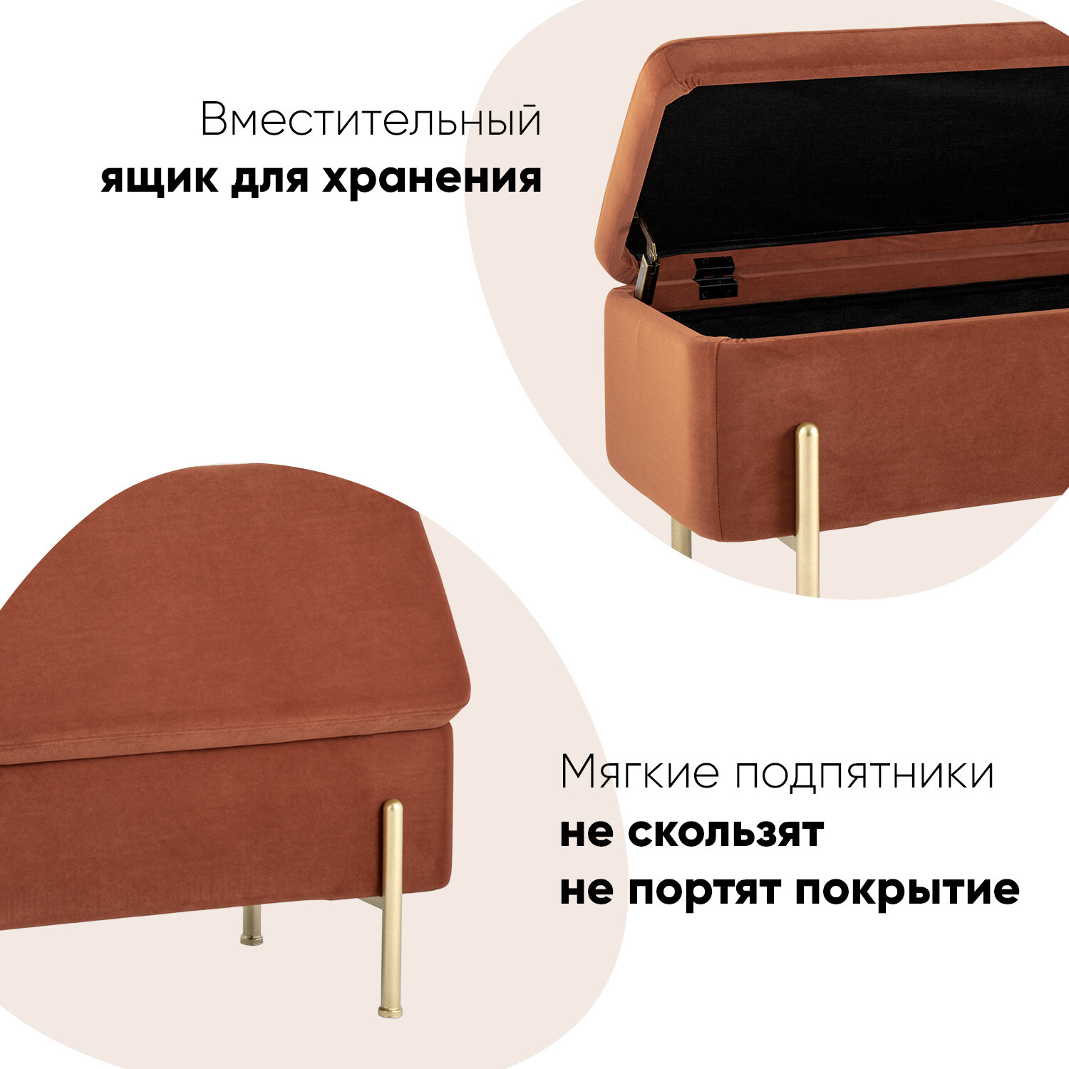 Банкетка Болейн с ящиком велюр терракотовый ножки из металла цвет золото