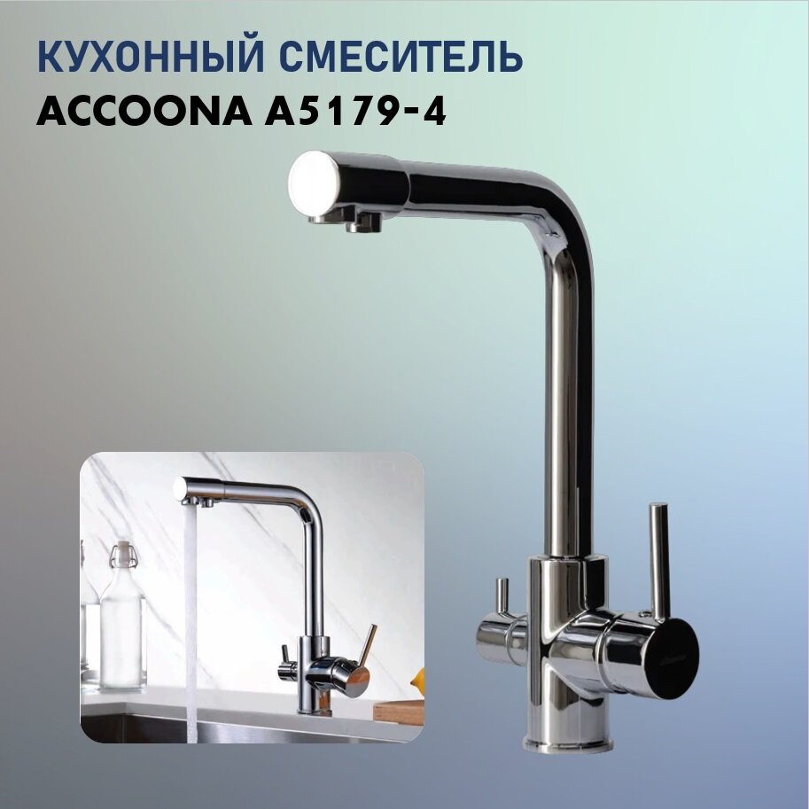 Смеситель для кухни Accoona А5179-4, с краном для питьевой воды, однорычажный, хром Accoona 1509512 .