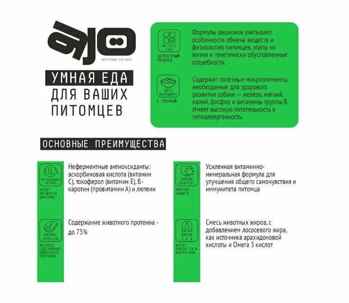 AJO Mini HYPOALLERGENIC полнорационный сухой корм для взрослых собак миниатюрных и малых пород склонных к аллергиям с гречкой 2 кг