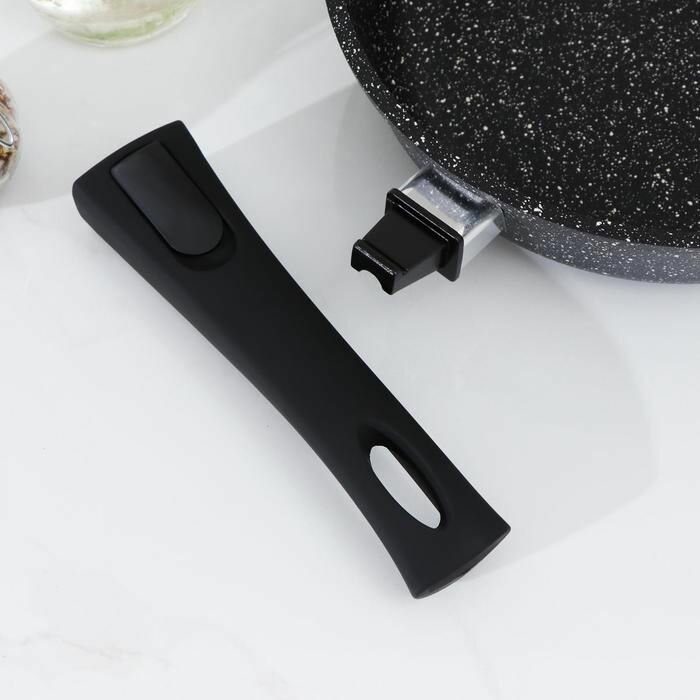 Сковорода "Элит", d=22 см, съёмная ручка, стеклянная крышка, антипригарное покрытие, цвет чёрный