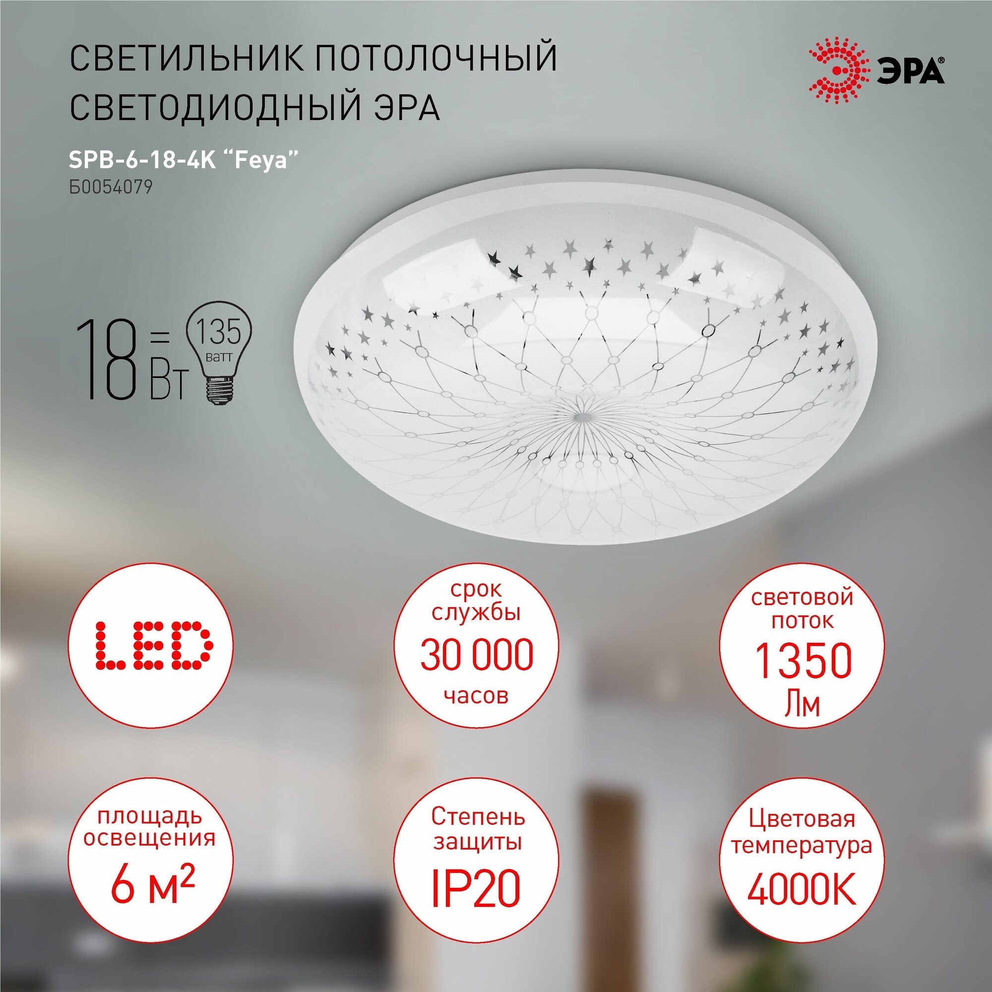 Потолочный светильник Эра SPB-6-18-4K Feya Б0054079