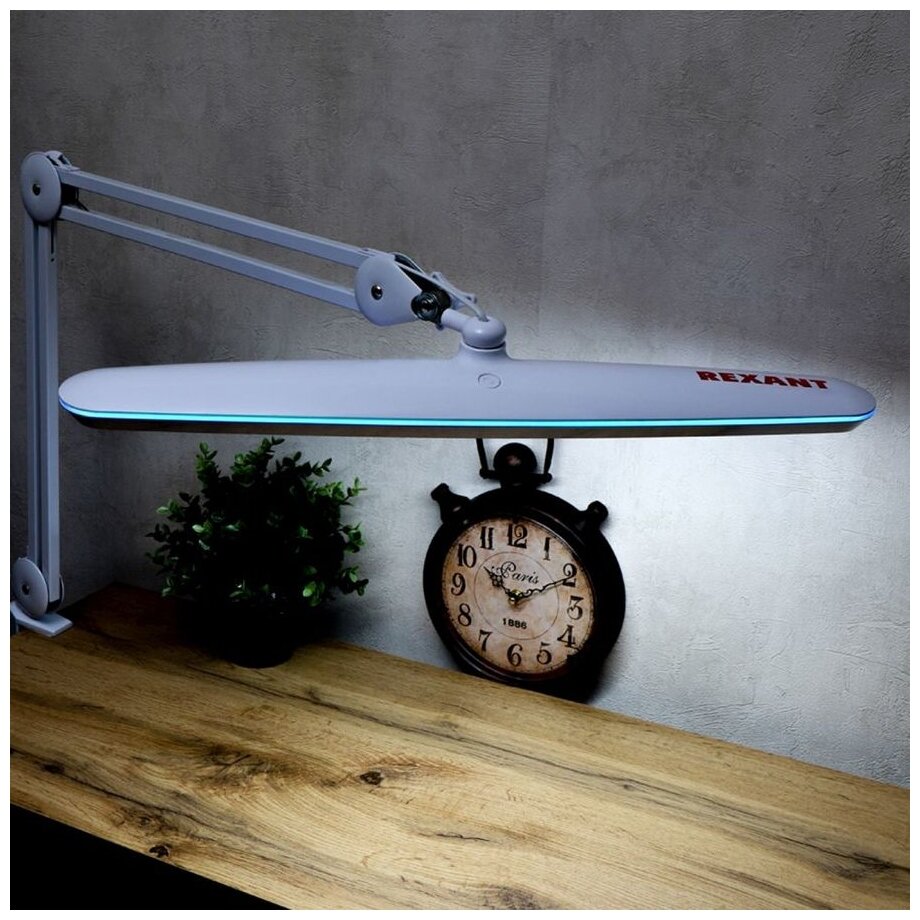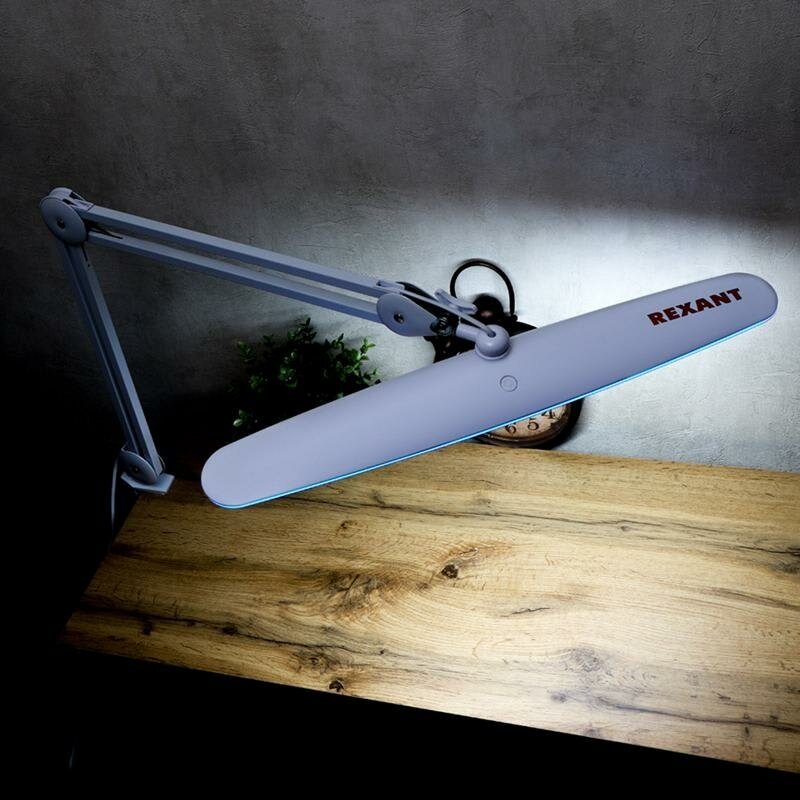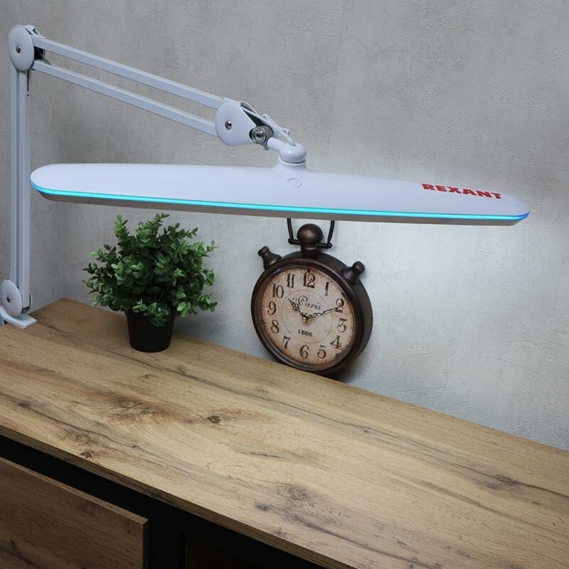 Лампа настольная бестеневая REXANT, струбцина, «Blue Stream», 117 SMD LED, диммер (4 уровня), белая