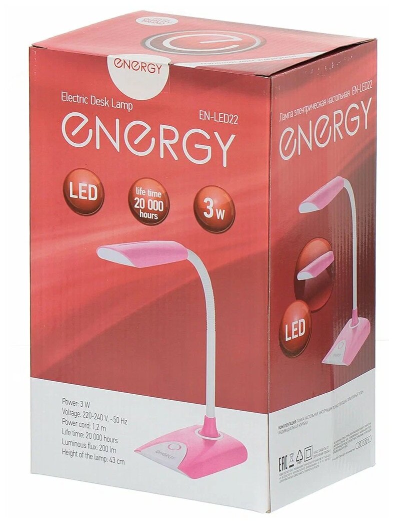 Лампа офисная светодиодная Energy EN-LED22, 3 Вт, розовый