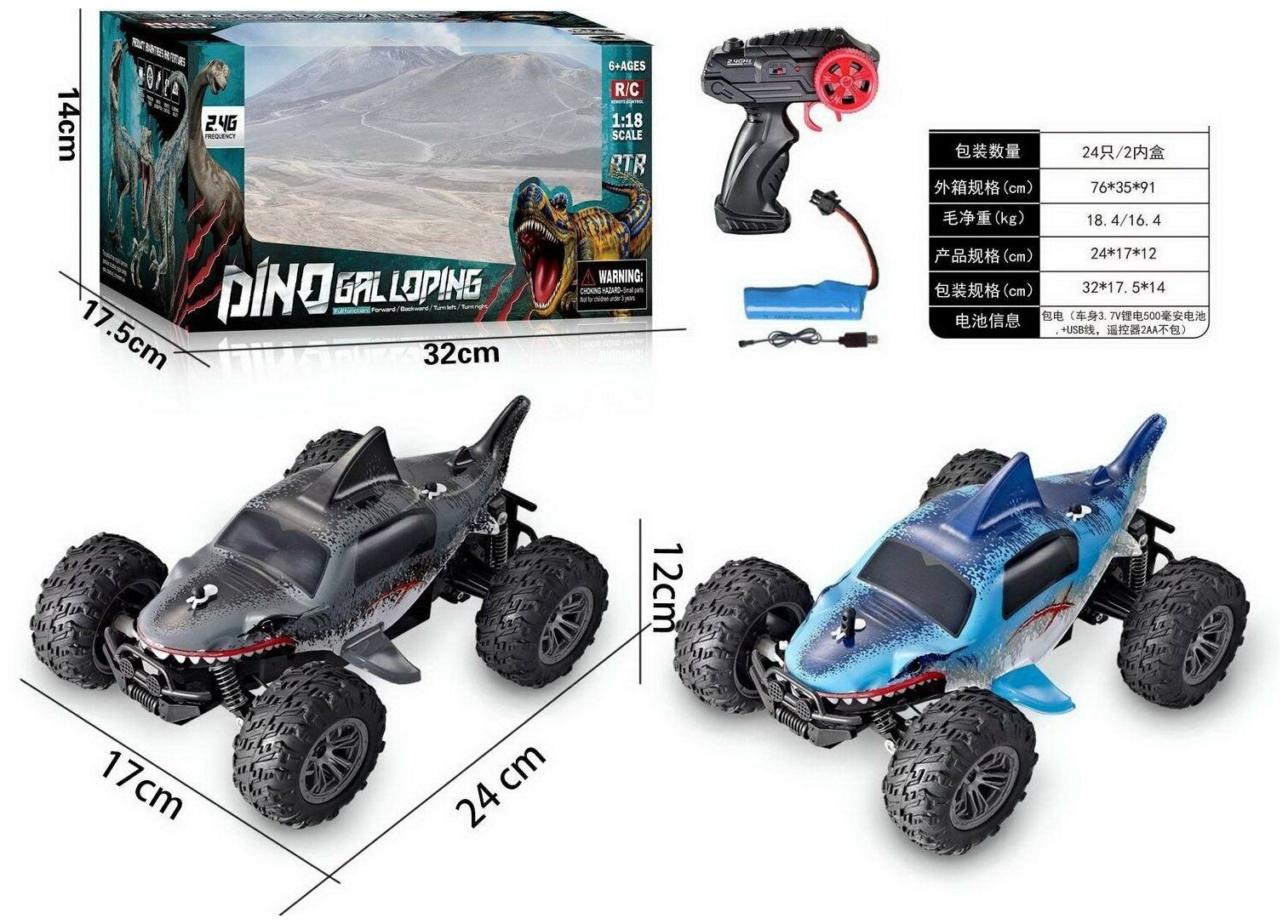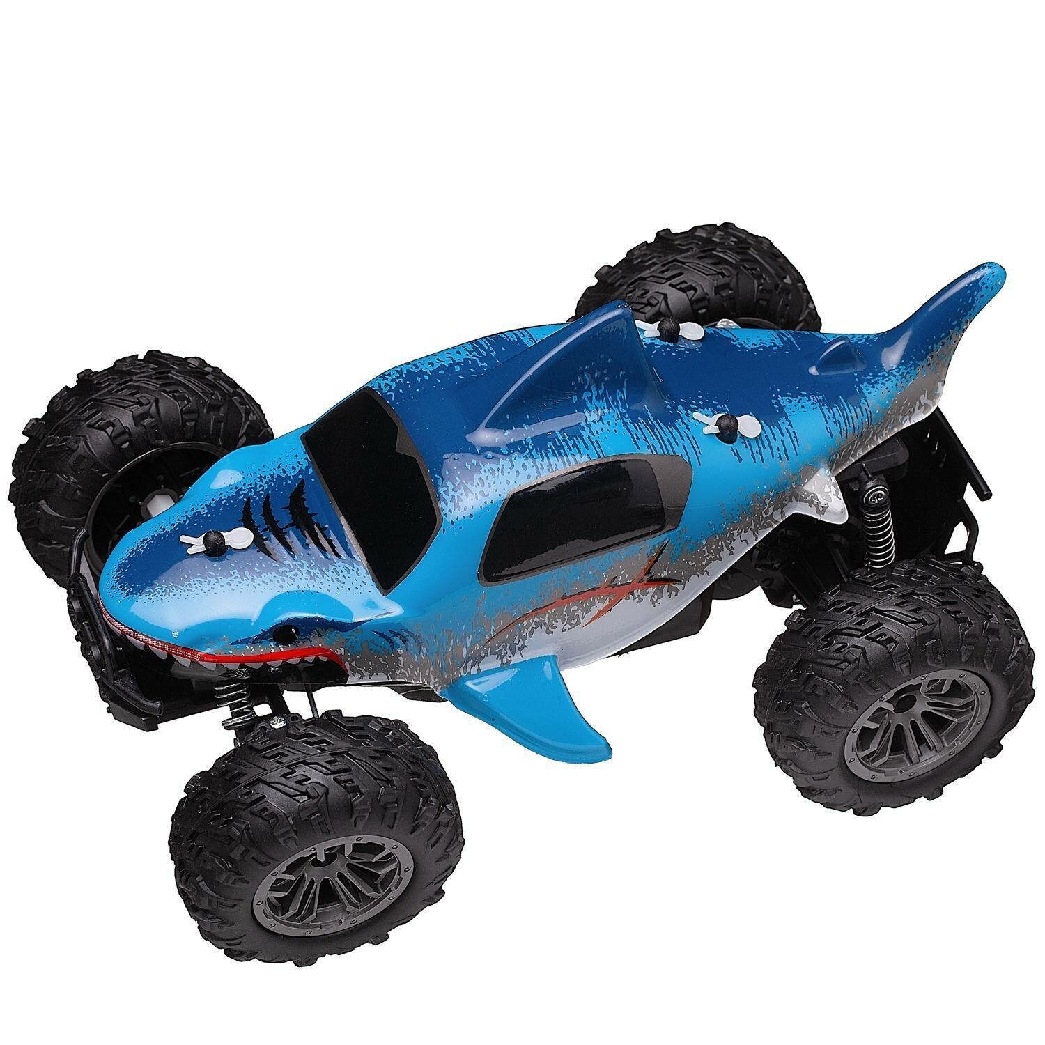 Джип радиоуправляемый Junfa Акула, повышенной проходимости , 1:18, 2,4 ггц, синий, серый (WD-21845)