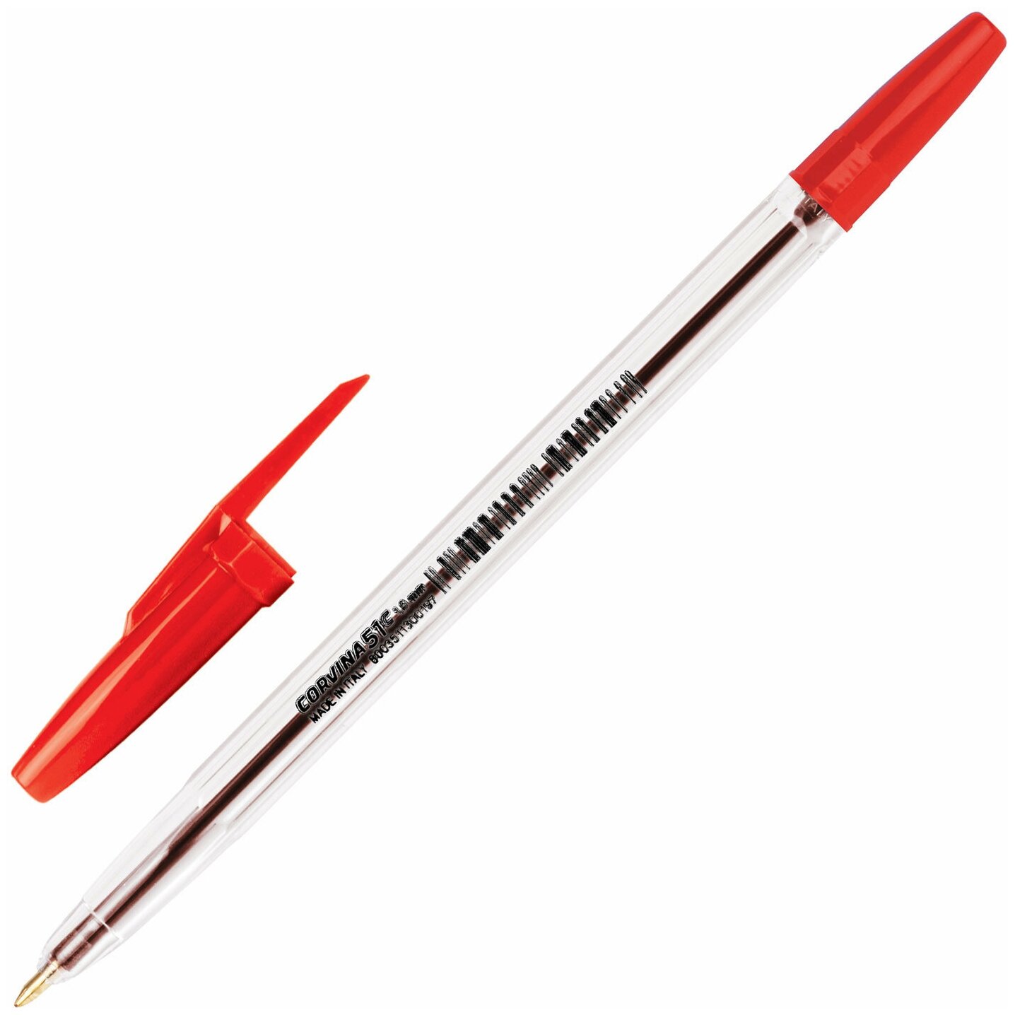 Ручка шариковая CORVINA (Италия) "51 Classic", красная, корпус прозрачный, узел 1 мм, линия письма 0,7 мм, 50 шт.