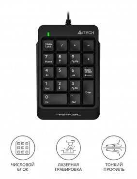 Числовой блок A4TECH Fstyler FK13P, USB, без русского алфавита, черный [fk13p black]