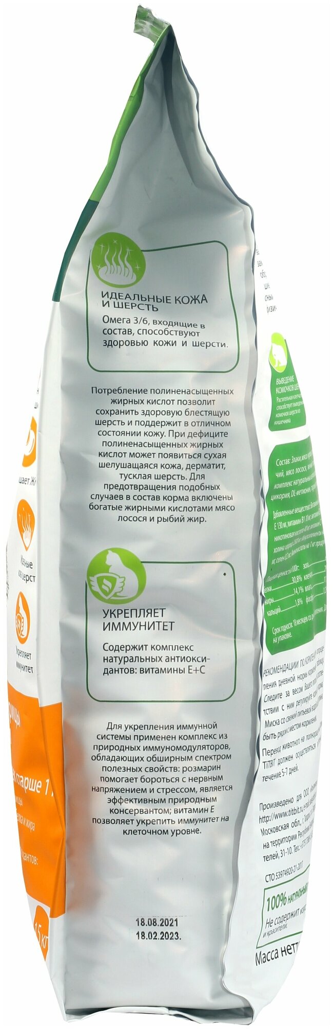 Корм сухой для взрослых кошек TiTBiT полнорационный, с мясом курицы и овощами 1,5 кг