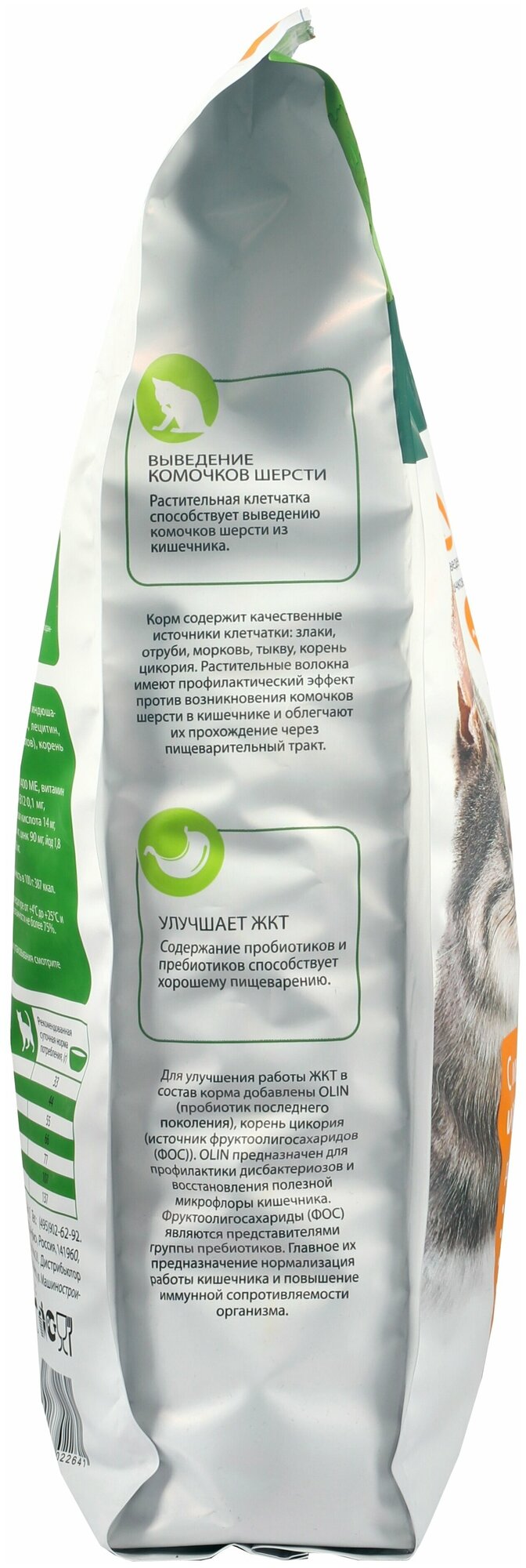 | Состав | злаки, мясо курицы, отруби, дрожжи пивные, гидролизат печени говяжьей, жир индюшачий, мясо лосося, яичный порошок, рыбий жир, морковь, тыква, пробиотик OLIN, лецитин, комплекс натуральных антиоксидантов (экстракт розмарина, смесь альфатокоферолов), корень цикория, DL-метеонин, таурин, витаминный комплекс. Добавленные вещества: Витамины на 1 кг продукта: витамин А 20000 МЕ, витамин Д 1400 МЕ, витамин Е 130 мг, витамин В1 10 мг, витамин В2 (рибофлавин) 10 мг, витамин В6 6 мг, витамин В12 0,1 мг, никотиновая кислота 40 мг, витамин С 100 мг, пантотеновая кислота 10 мг, фолиевая кислота 14 мг, холина хлорид 2500 мг. Микроэлементы на 1 кг продукта: железо 70 мг, медь 10 мг, цинк 90 мг, йод 1,8 мг, селен 0,2 мг. Аминокислоты на 1 кг продукта: таурин 2,5 мг, DL-метионин 8,8 мг |